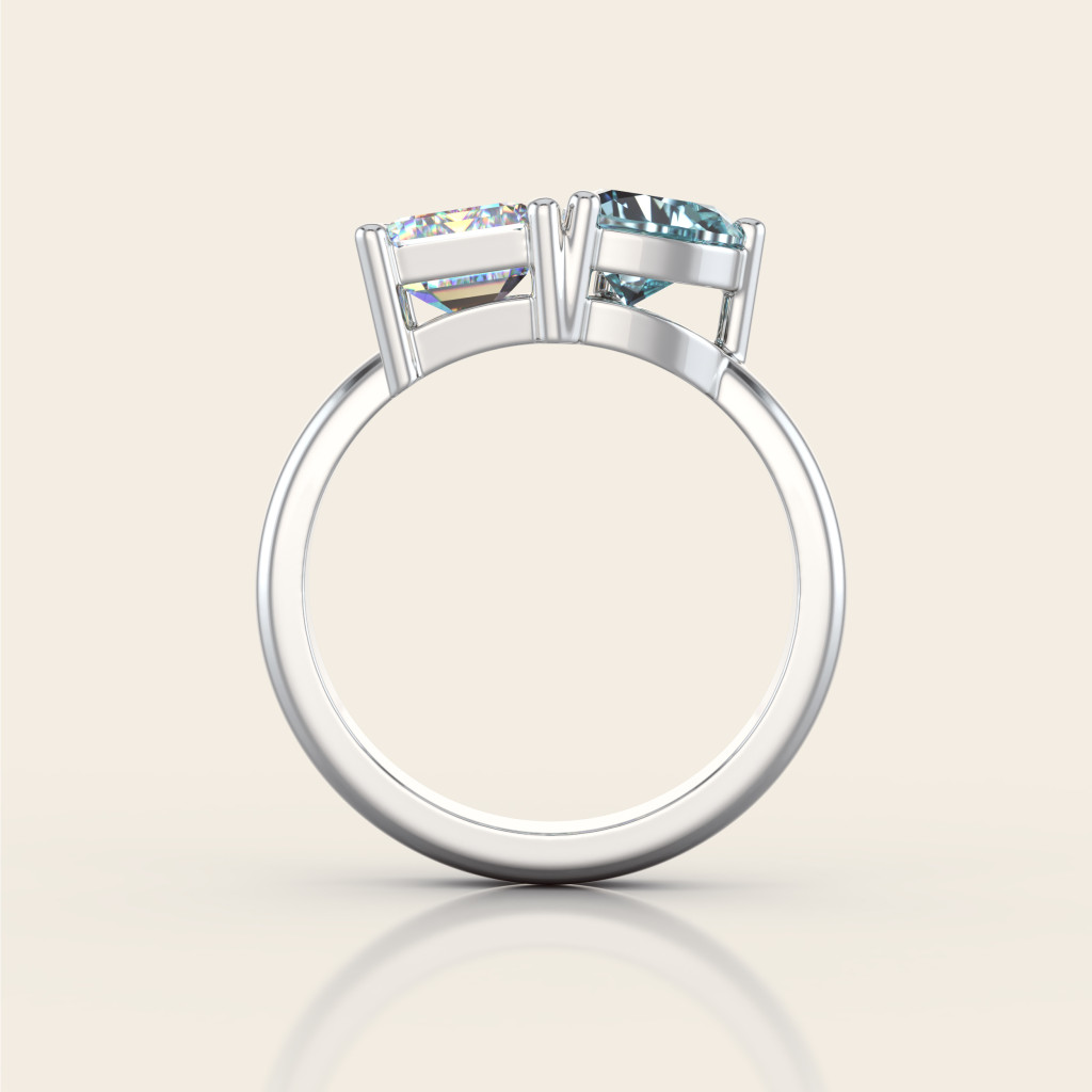 Zásnubný prsteň Toi et Moi Destinée, po slovensky „ty a ja“, je oslavou osudového spojenia dvoch sŕdc. Jeho jedinečný dizajn kombinuje kontrastné tvary – emerald cut (1.50 ct) a heart cut (1.00 ct) – ktoré spolu vytvárajú harmonickú rovnováhu medzi eleganciou a romantikou.