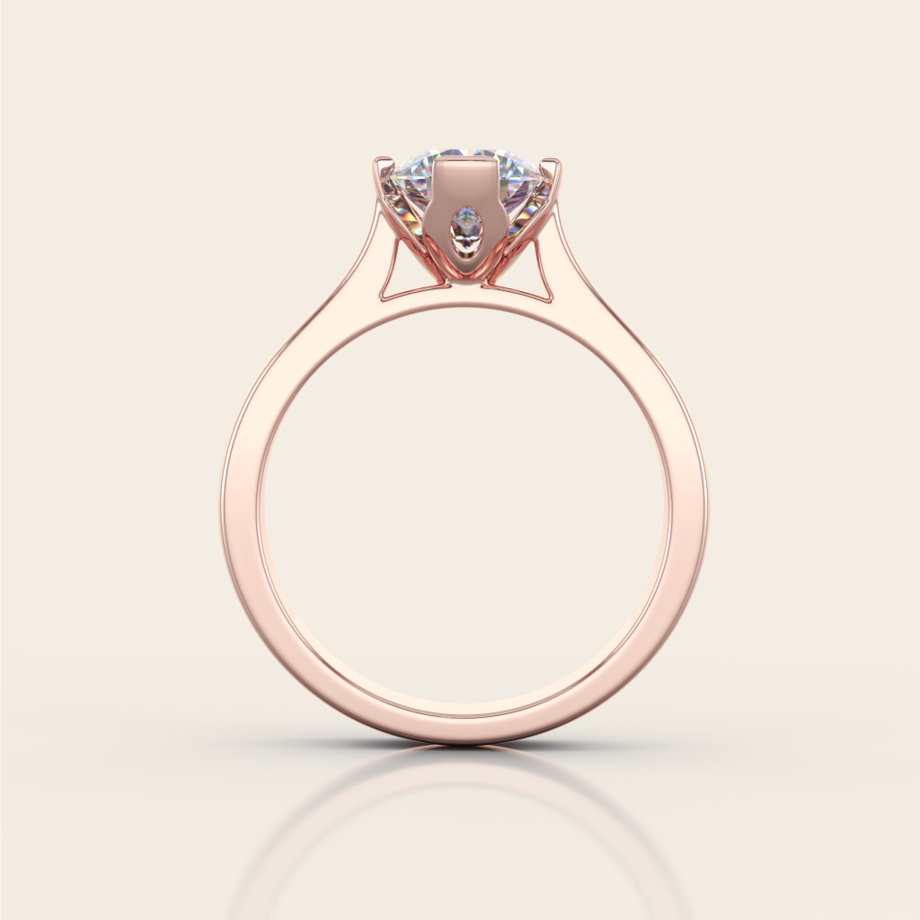 Zásnubný prsteň Emma z ružového zlata je stelesnením elegancie a lásky. Dominantný diamant s veľkosťou 1.00 ct je osadený do precízne tvarovanej korunky, ktorá dokonale zvýrazňuje jeho jas a brilantnosť. Jemný odtieň ružového zlata dodáva šperku romantický nádych a robí z neho ideálnu voľbu pre výnimočný okamih, akým je zásnuba.